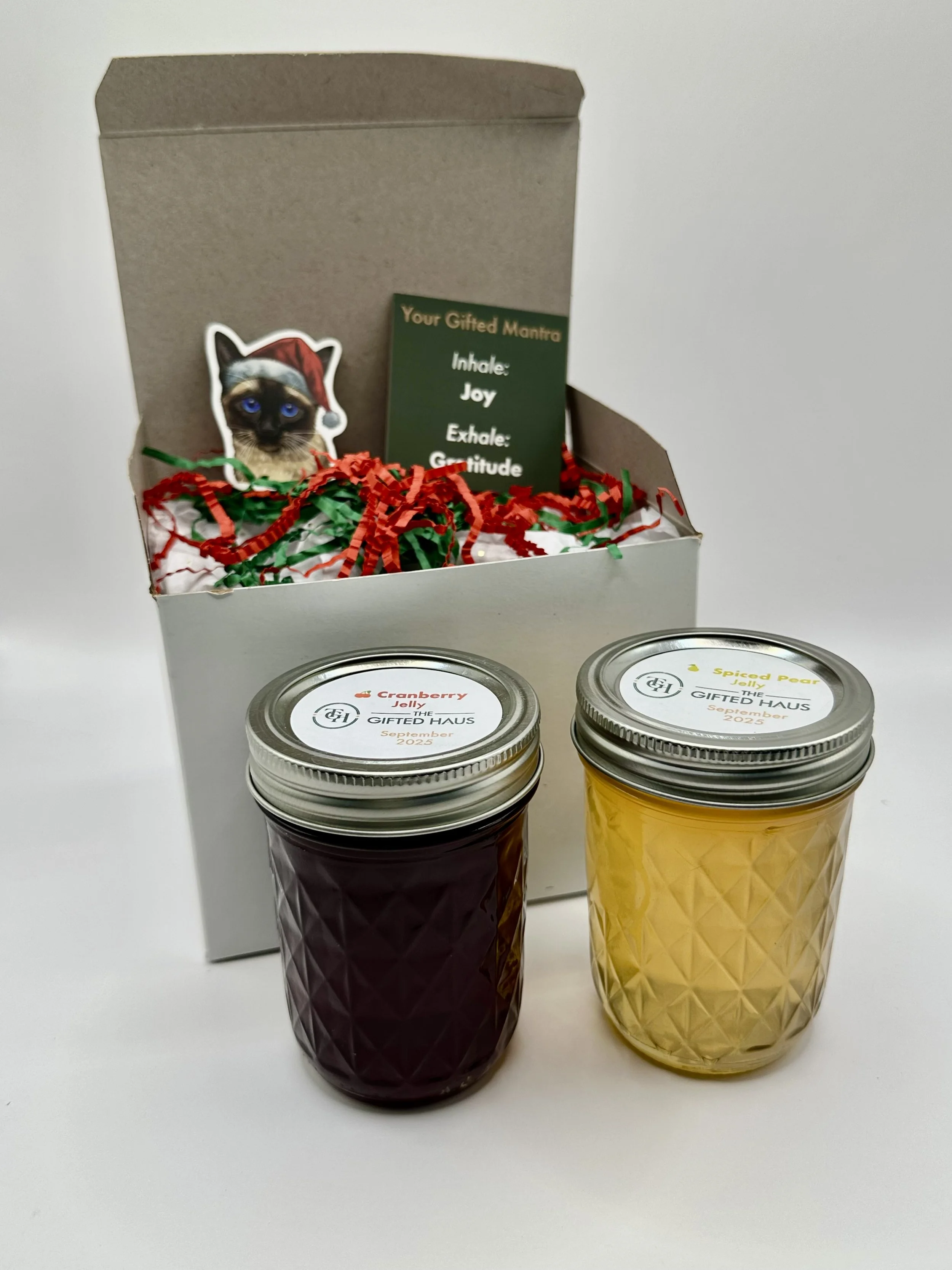 Two handcrafted holiday jellies, beautifully packaged in a ready-to-gift box.