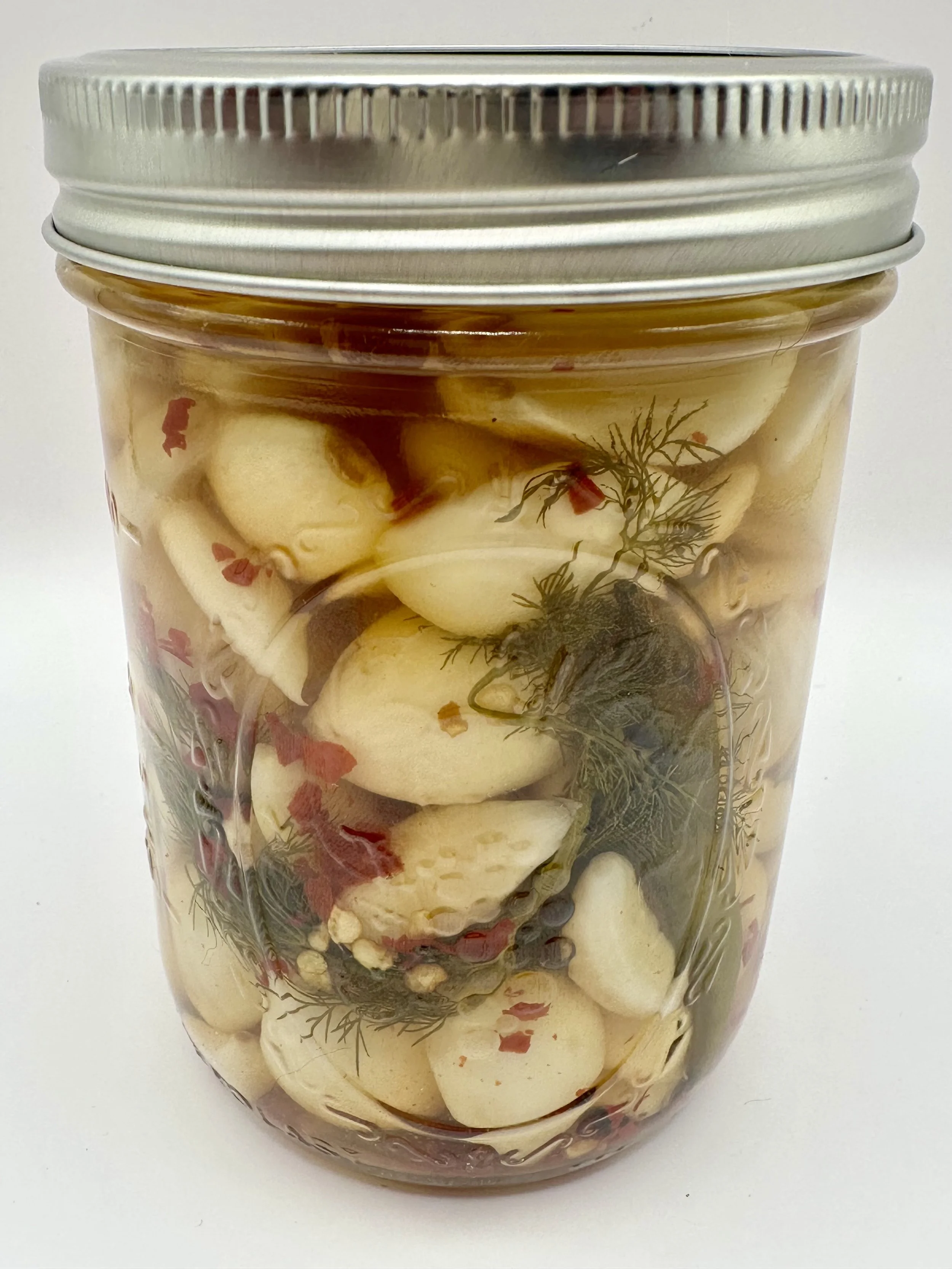 Original Pickled Garlic by The Gifted Haus β crisp hand-packed garlic cloves with dill, onions, and spices. Small-batch, bright flavor.