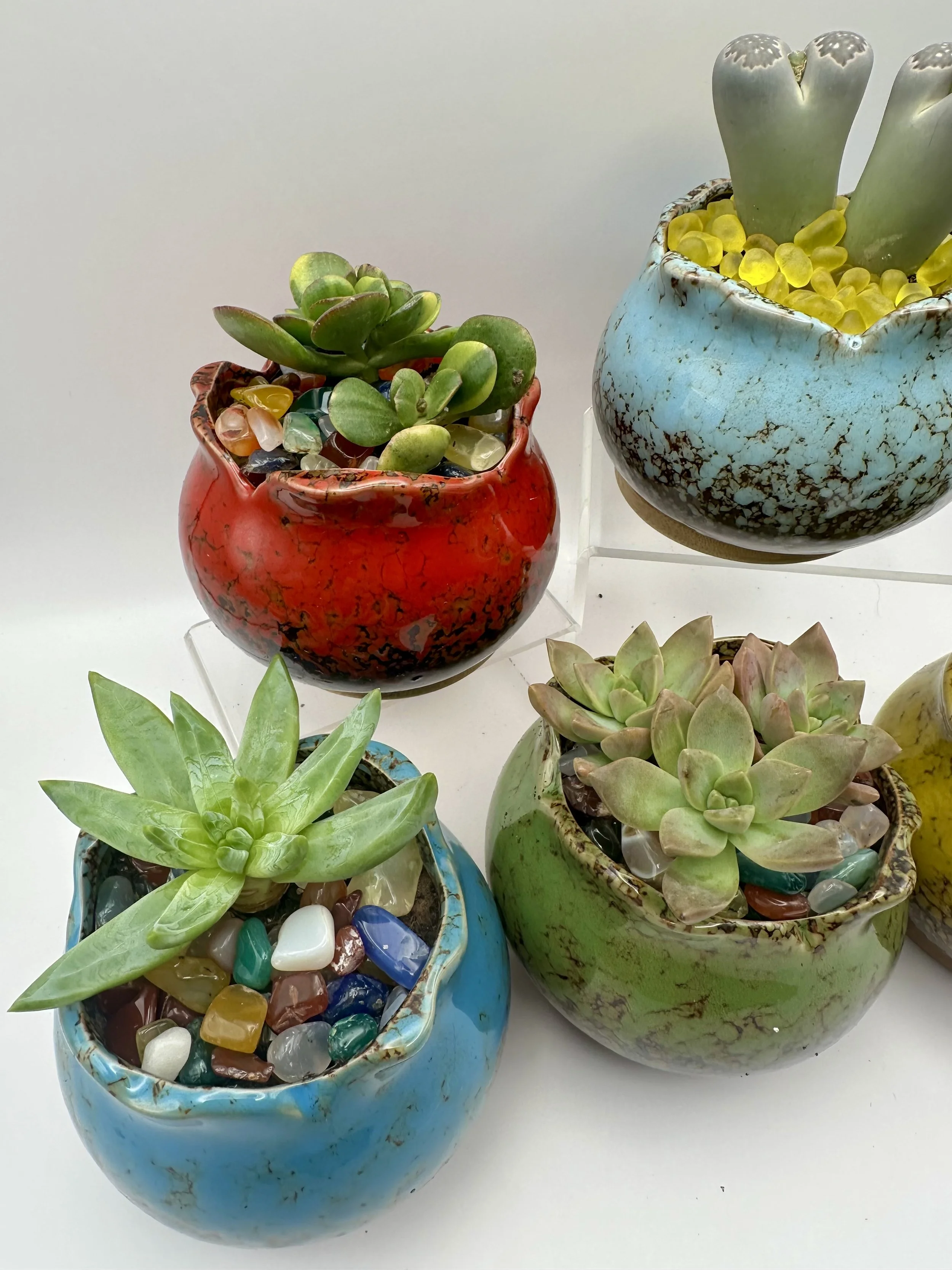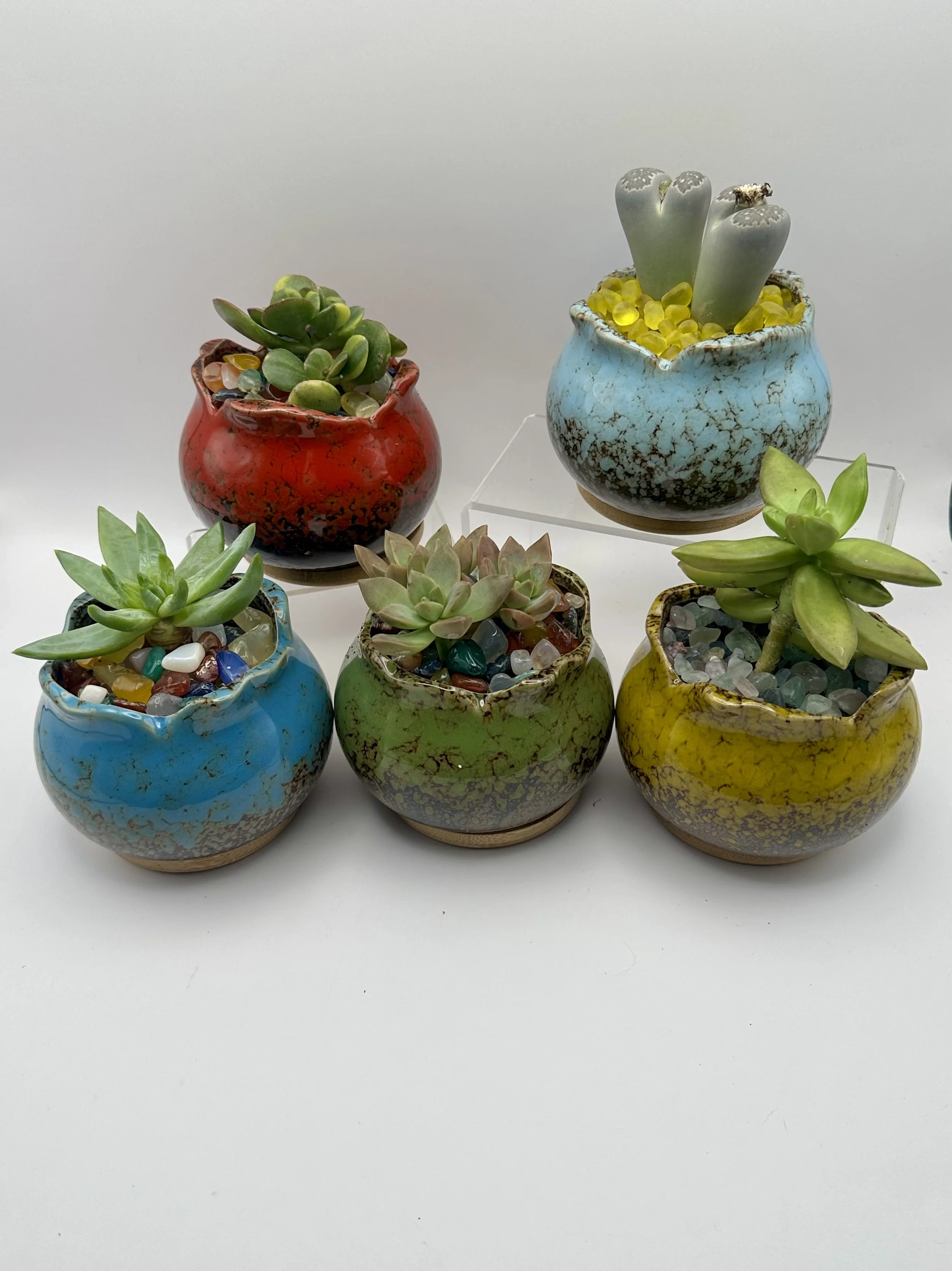 Small Succulent Planters — handcrafted with care and creativity. Each pot features a unique mix of succulents, stones, and colors for one-of-a-kind charm.
